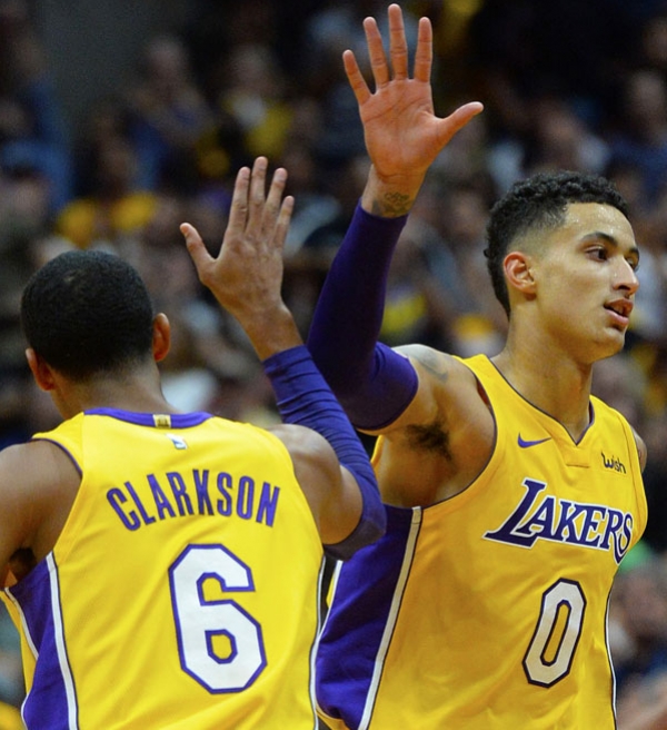 Lonzo Ball, Kyle Kuzma e Jordan Clarkson fizeram 10 bolas de 3 cada, porém o melhor aproveitamento é de Clarkson com 38.5%.